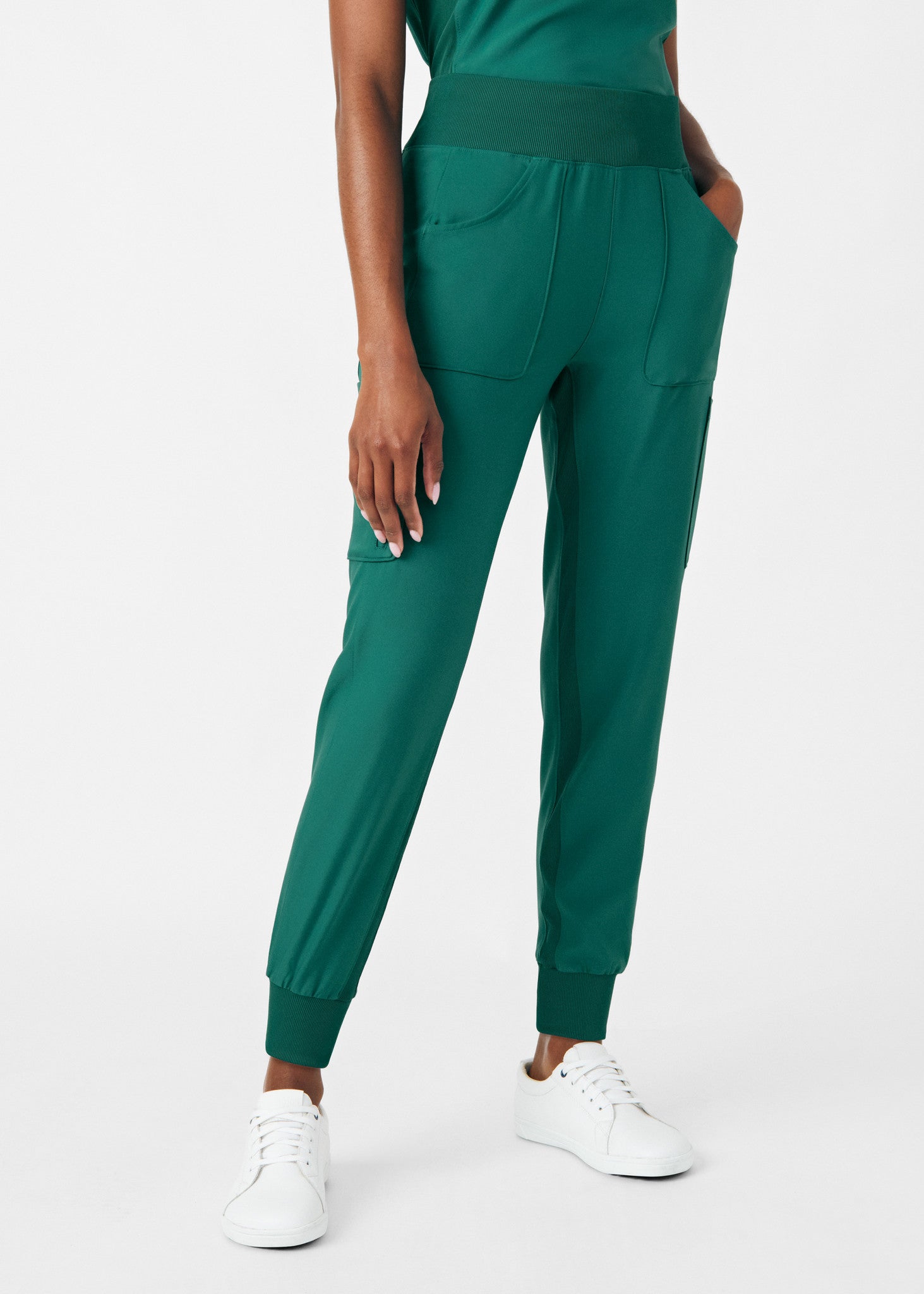 - Mid-rise rib-knit elastic waist with an internal drawstring for a clean look with a secure fit