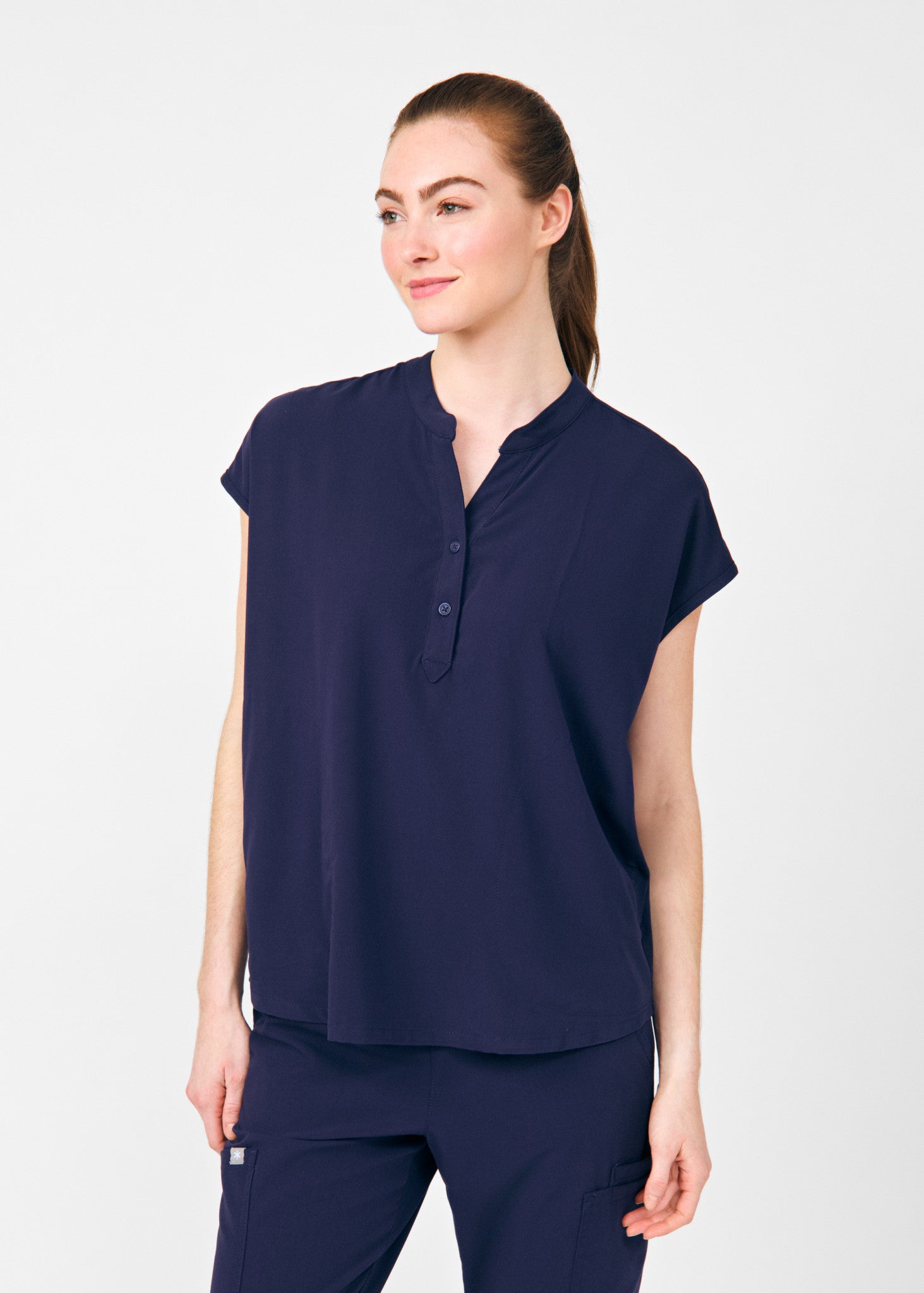 Keep it sophisticated with luxe details, comfy in a relaxed fit, and flattering with a versatile shirttail hem.