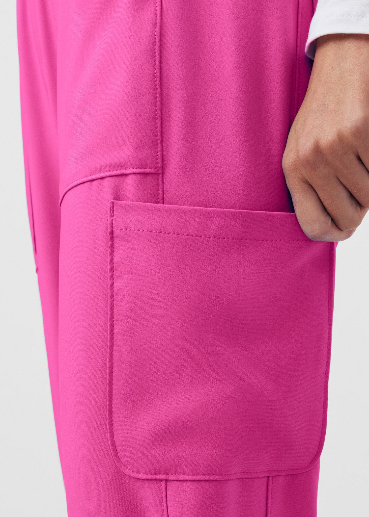 - 7 pockets: 2 curved hip pockets, 2 cargo pockets, 1 zipper accessory pocket, 2 back pockets