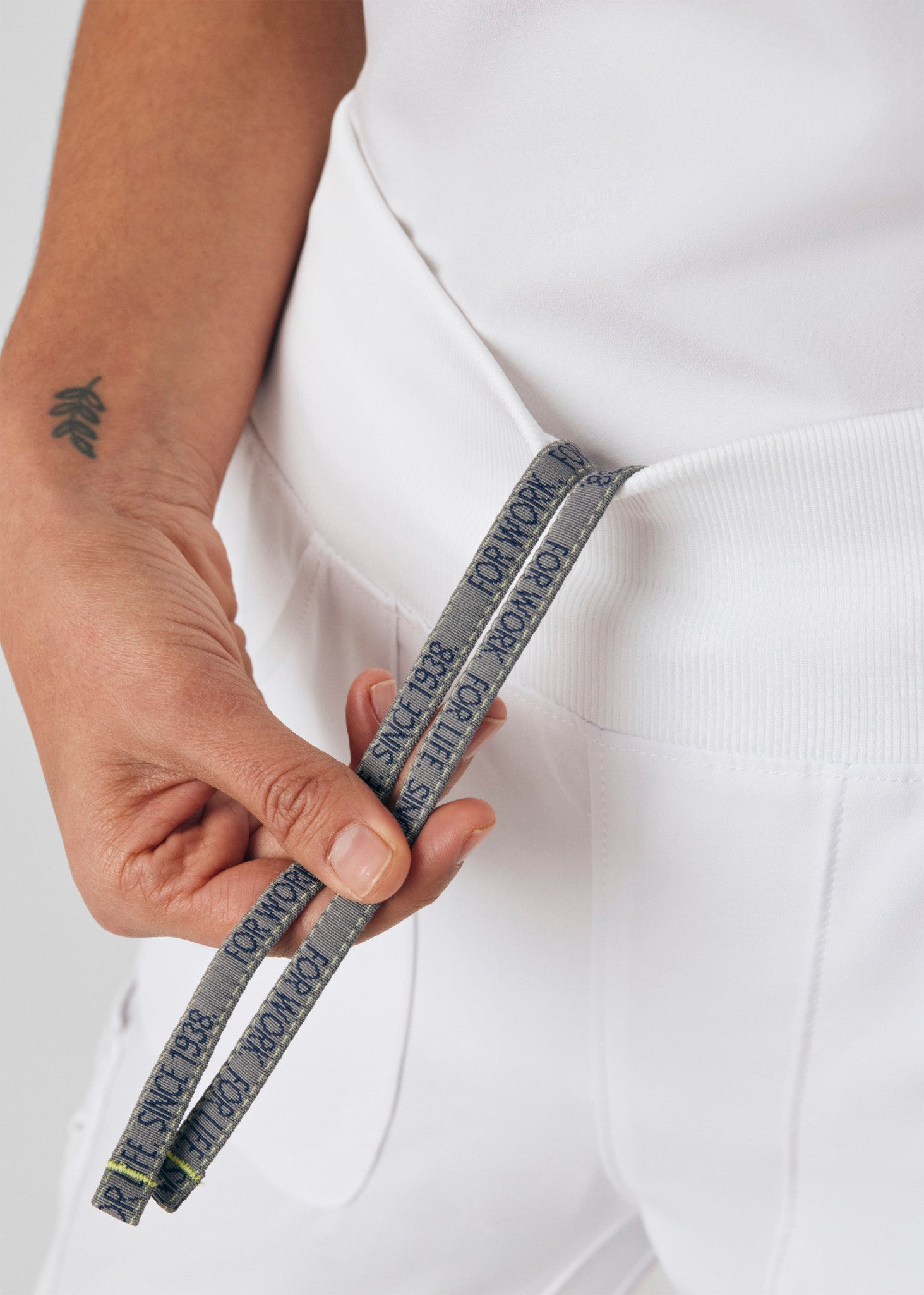 - Mid-rise rib-knit elastic waist with an internal drawstring for a clean look with a secure fit